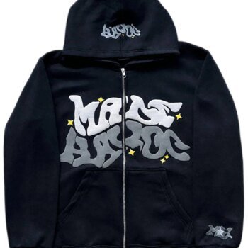 Men’s Full Zip Y2K Hoodie Graphic Lettter Print Long Sleeve Fashion Jacket Hooded Sweatshirt
