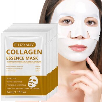 Collagen Face Mask Hydrating Shrinking Pores Fade Fine Lines Sheet Mask Korean Skin Care Moisturizing Refreshing Hyaluronic Acid