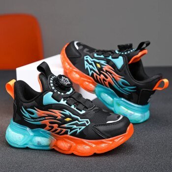 Kids Sneakers Anti-skid Leather for Boys Orange Casual Children Shoes with Fashion Running Walking Lightweight Dragon Pattern