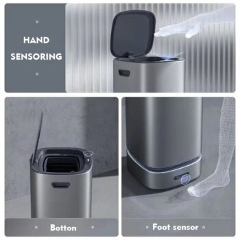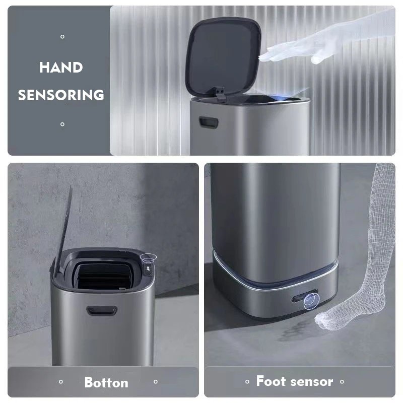 2. Intelligent sensor opening. Hand sensing, kneeling sensing, bottom foot sensing, 0.2 second fast sensing, no need to touch the trash can, easy to clean.