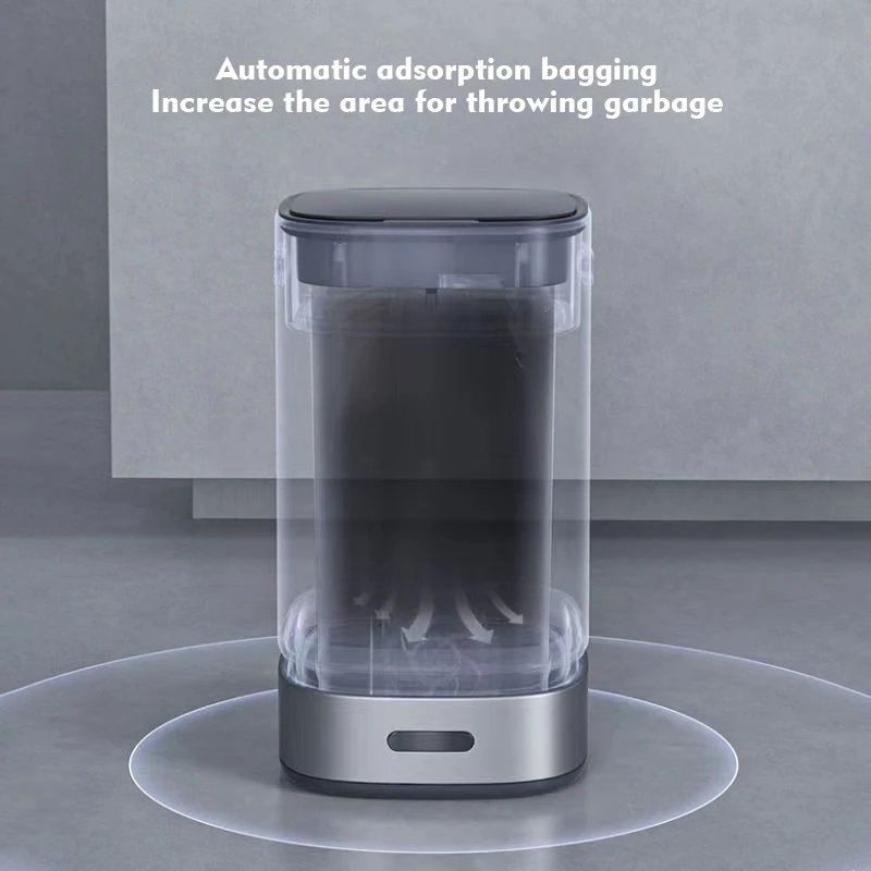After lifting the outer bucket and taking out the garbage bag, put it back into the outer bucket and automatically open the lid and start suctioning for 8 seconds. During this time the logo and lights will be on. The sensor and button functions are temporarily disabled and will return to normal after the bag laying is completed.