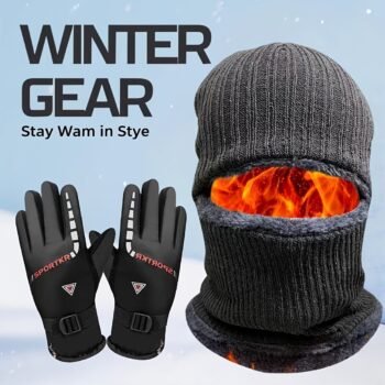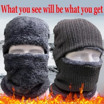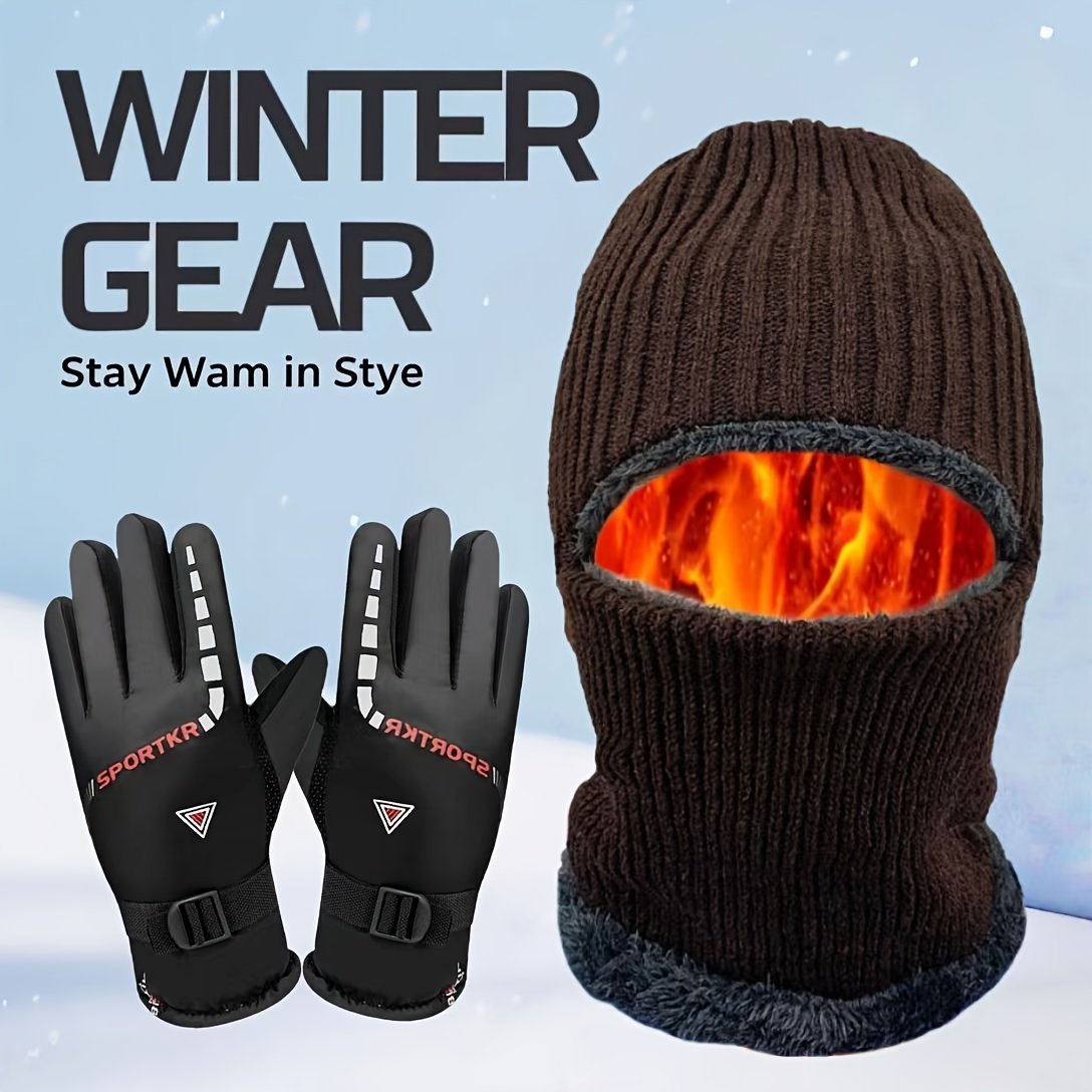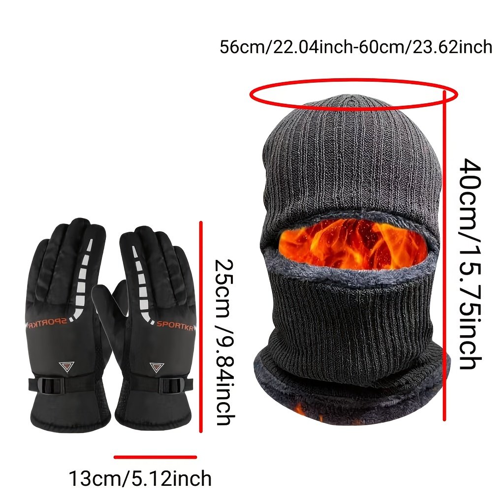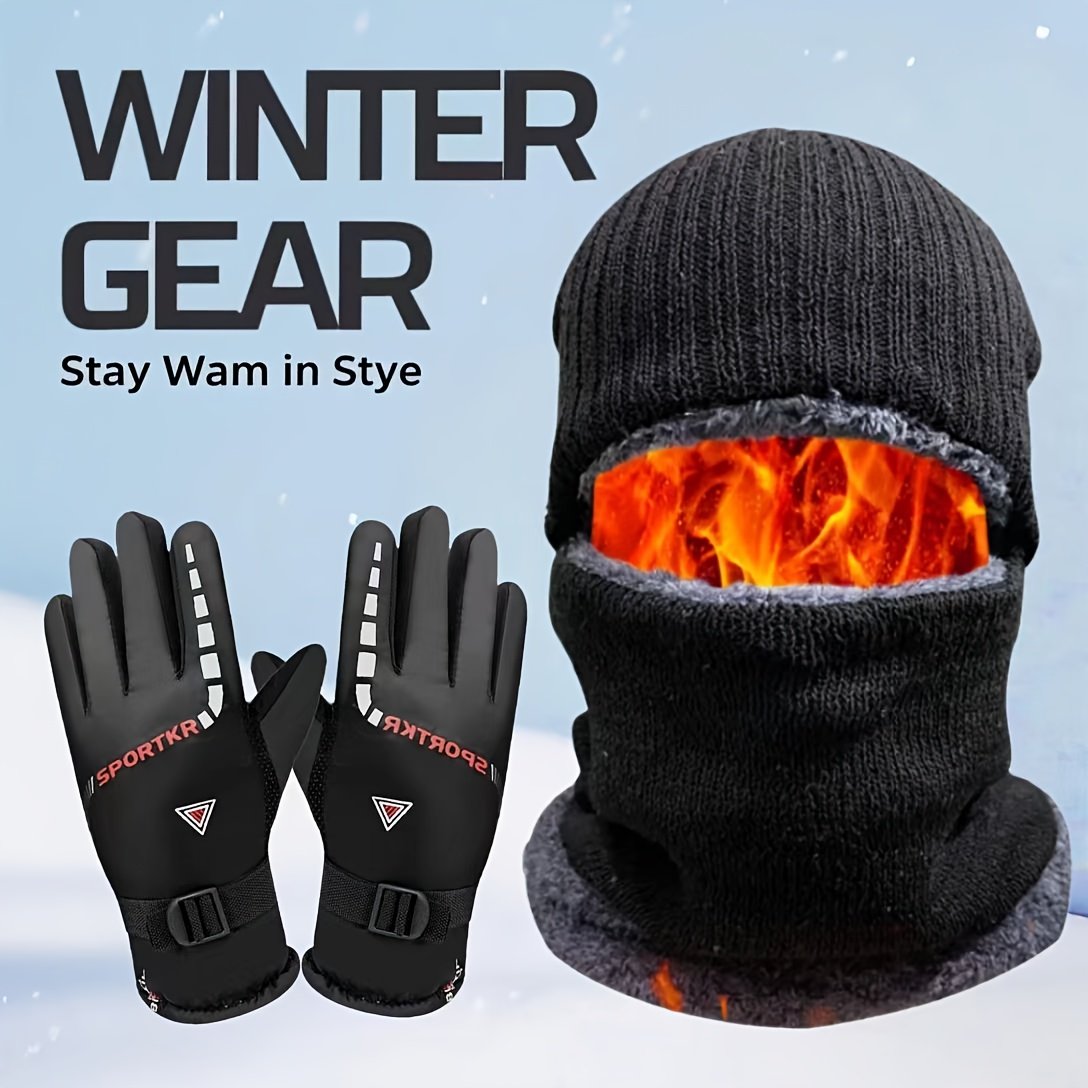 BLACK -2pcs Heavyweight Warm Fleece Balaclava Set – Includes Hat + Gloves