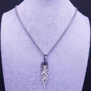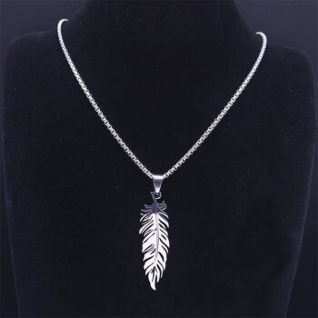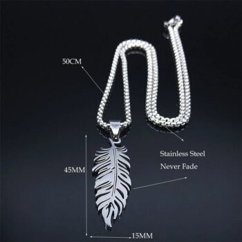 Boho Feather Pendant Male Necklace for Women Men Stainless Steel Silver Color Leaf Chain Jewelry Gift collar hombre N3393S01