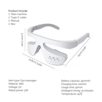 6. Type-C charging.The eye massager can be fully charged in 90min, can be used continuously for about 100min and has a 15min timer function.