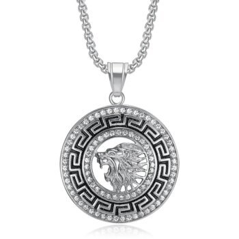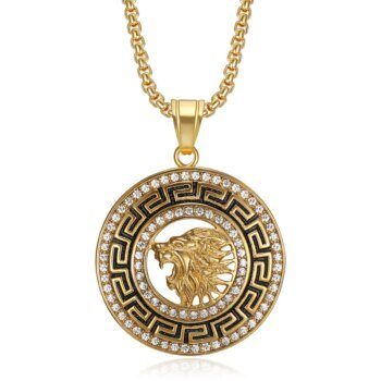 Hip Hop Lion Stainless Steel Gold Plated Zircon Lion Pendant Necklace Men’s Pendant Gift Jewelry Stylish Round Accessories