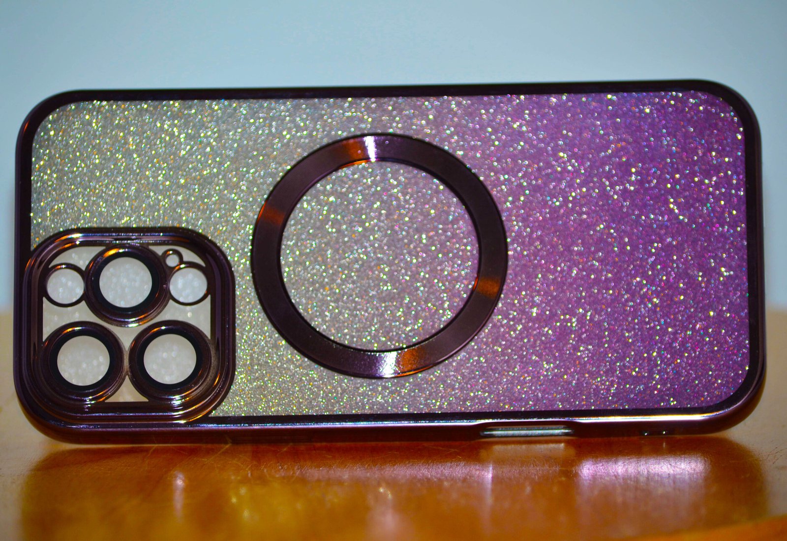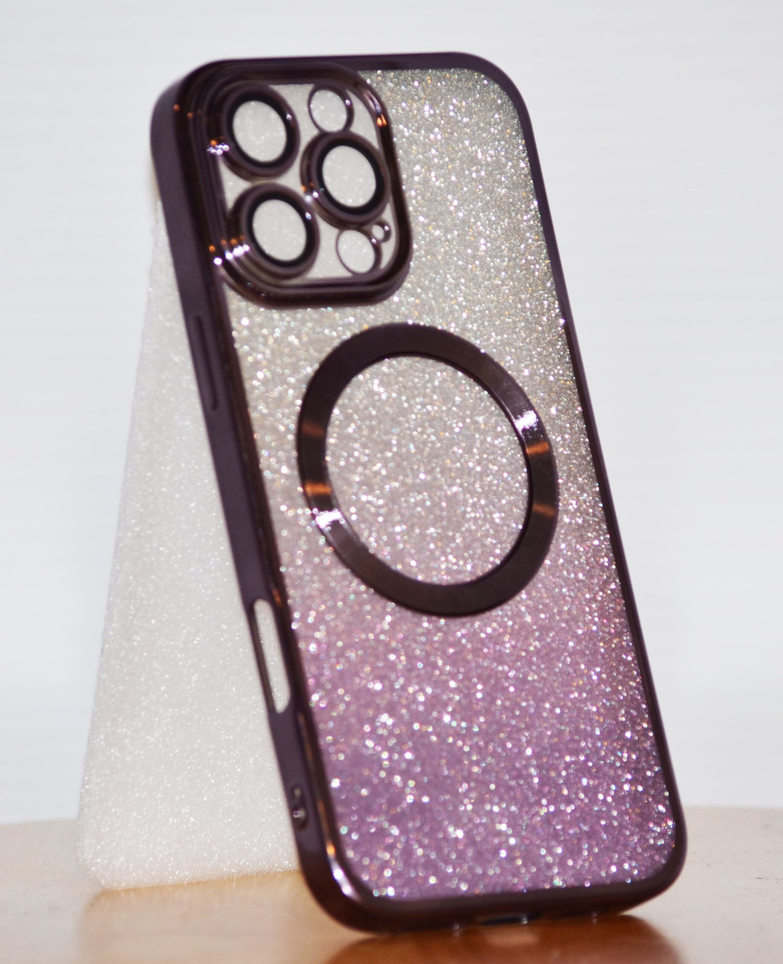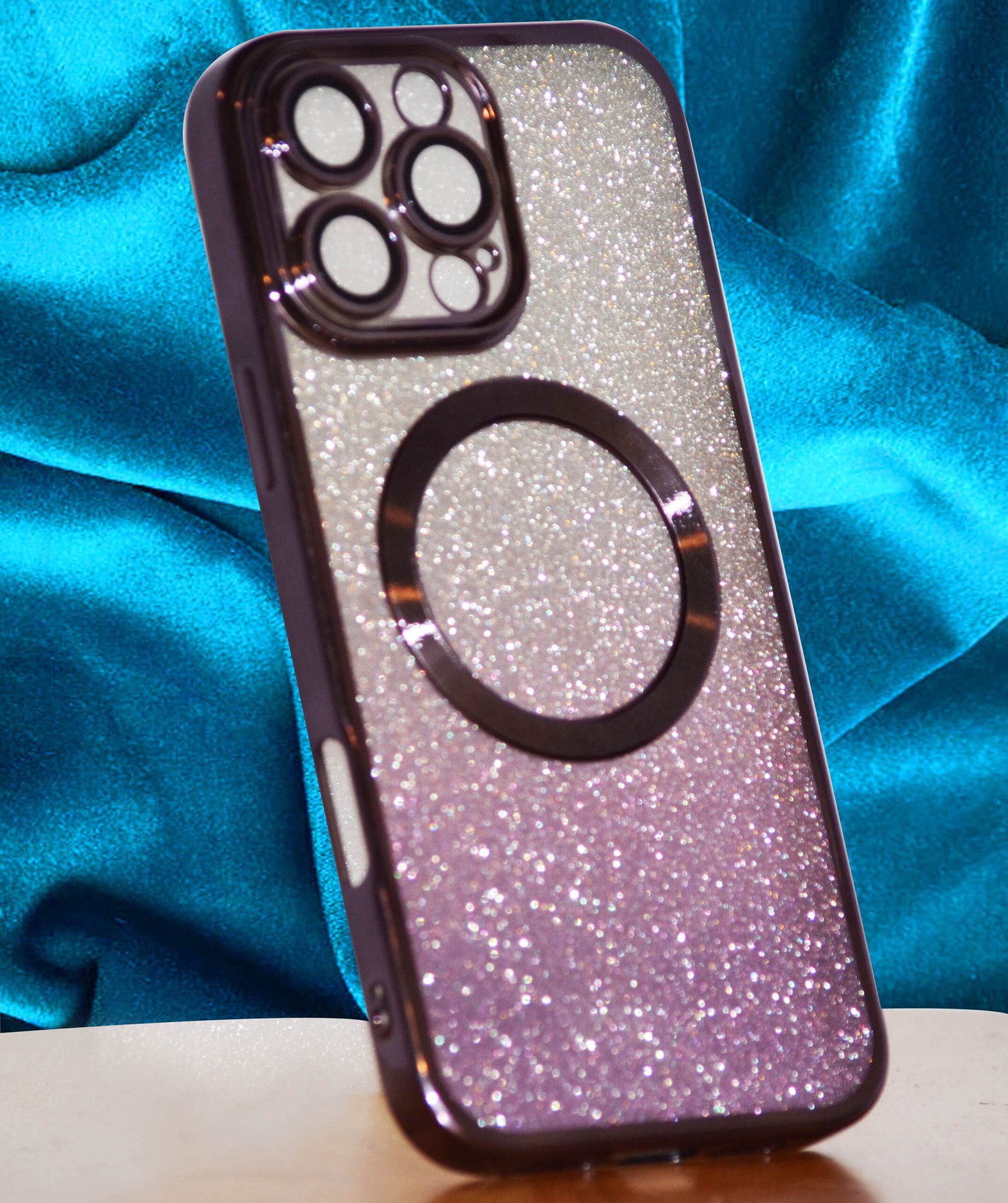 I-phone 11 12 13 14 15 16 Pro Max Plus, Purple, Luxury TPU Soft Gradient Color Glitter Magnetic Charging Case Protective Cover.