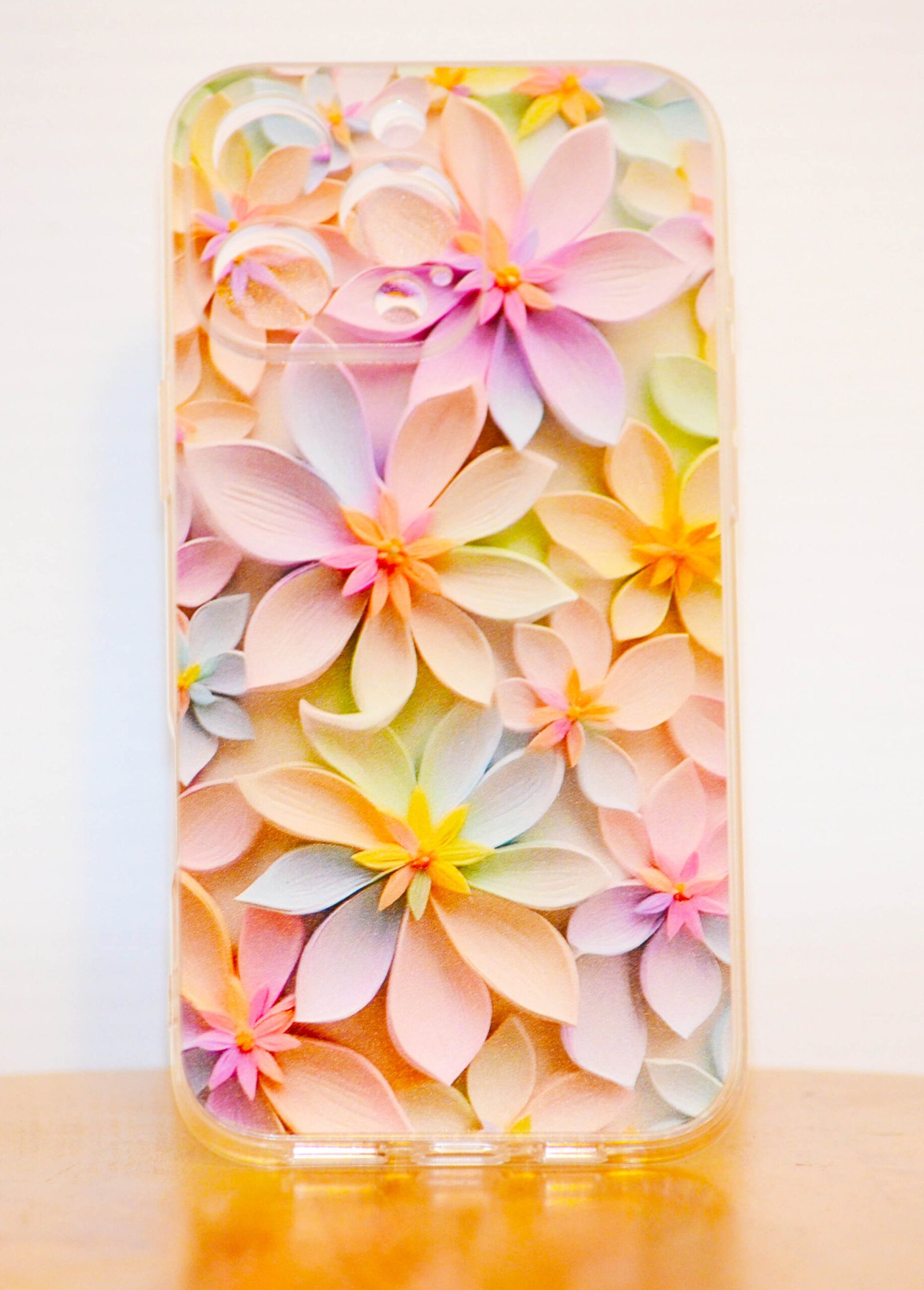 Colorful Macaron Floral Print Mobile Phone Case – Transparent, Full Wrap Protection – For iPhone 16/15/14Plus Pro Max Series – Perfect Gift for Lovers.